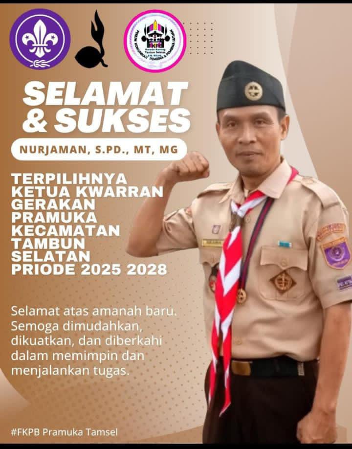 Opinimcom, Tambun Selatan — Musyawarah Ranting Gerakan Pramuka Tambun Selatan Tahun 2025 resmi menetapkan Nurjaman, S.Pd., MT, MG sebagai Ketua Kwartir Ranting (Kwarran) Pramuka Tambun Selatan periode 2025–2028. Penetapan dilakukan melalui musyawarah mufakat yang berlangsung khidmat dan penuh kebersamaan.